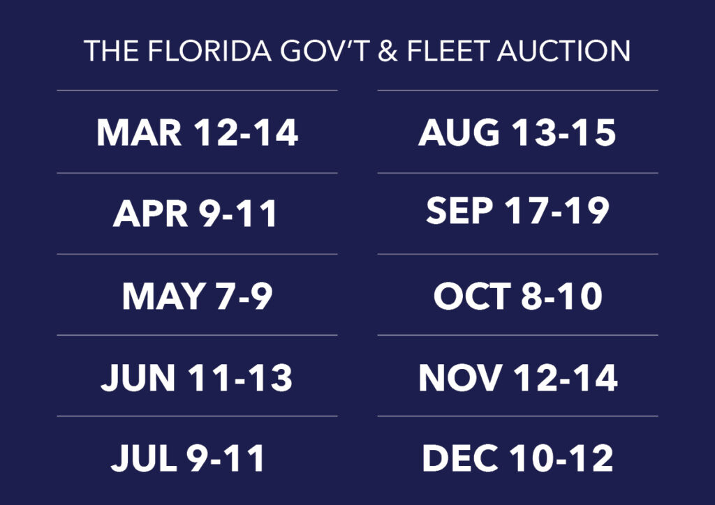 We partner with these government consignors and more for our premier government auctions. We also sell private consignment assets in Florida at our Fort Myers and Tampa area locations, as well as in Texas, expanding our reach and service. You can find heavy construction equipment, commercial trucks, recreational vehicles, boats, cars, trucks, SUVs, and much more at our monthly auctions. We also offer liquidation sales offsite for consignors who prefer to auction their assets directly at their location without needing to transport them to our auction yard. Florida and Texas’s top government auction company is proud to provide honest, committed, and professional auctions in Tampa, Fort Myers, Dallas-Fort Worth, and beyond.